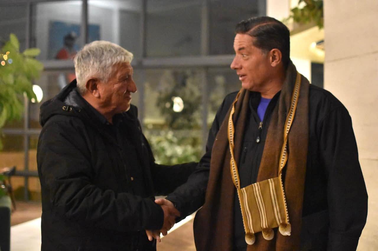 «Bienvenido a La Paz, una ciudad que late con historia, tradición y esperanza», expresó el Alcalde. Para el frío, le dió una chalina de alpaca y también una tradicional chuspa.