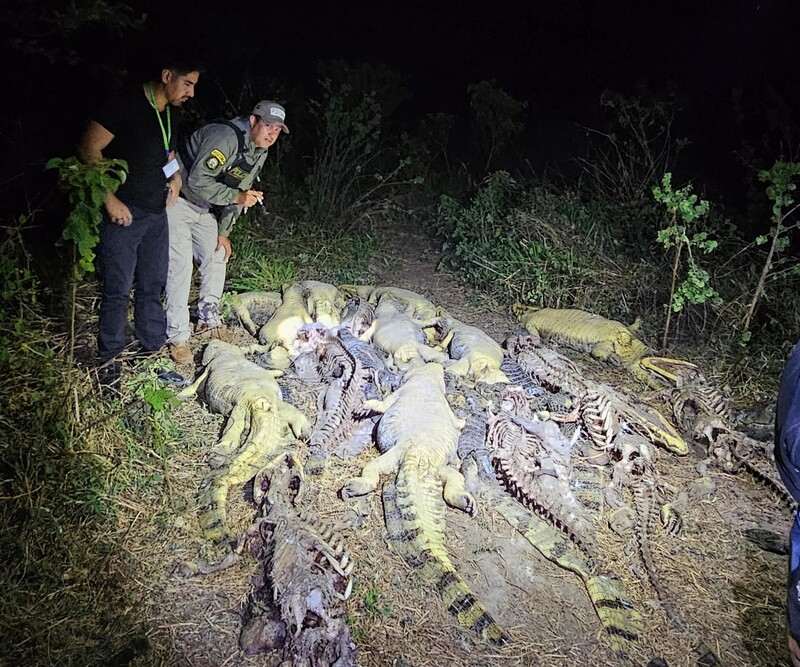 Durante la inspección, las autoridades encontraron 41 ejemplares muertos de Caimán Yacaré (lagarto) a orillas de una laguna, sin piel y en avanzado estado de descomposición.