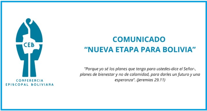 La Conferencia Episcopal Boliviana, emite el Comunicado: «Nueva Etapa para Bolivia» por la segunda vuelta de las Elecciones Presidenciales en Bolivia, que se realizaron ayer domingo 19 de octubre, donde el Pueblo boliviano eligió al Nuevo Presidente de Bolivia.