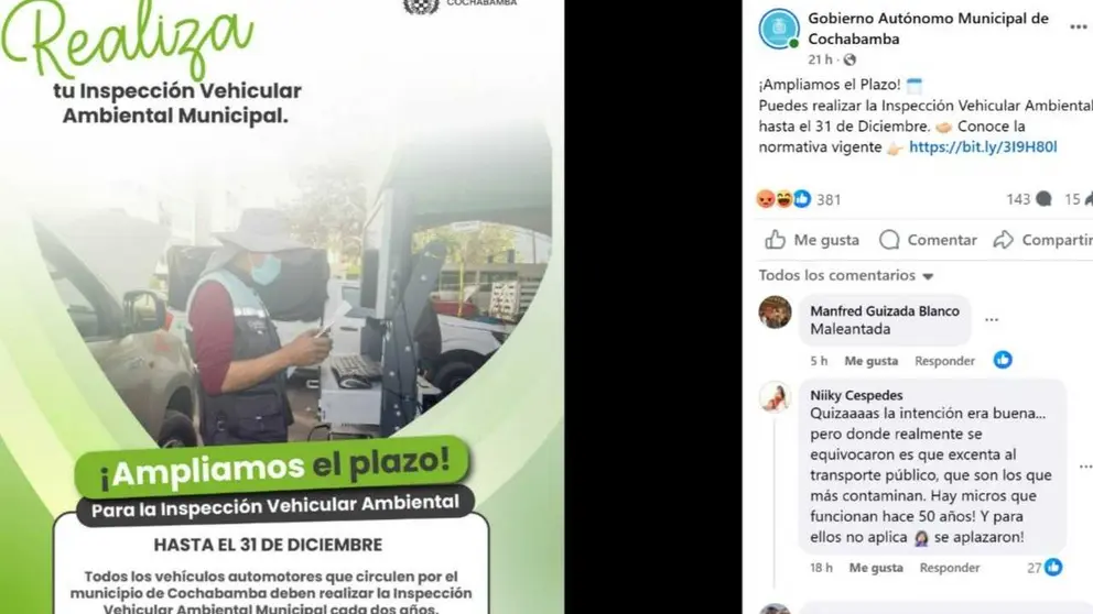 La Alcaldía de Cochabamba determinó la suspensión temporal de la Inspección Vehicular Ambiental Municipal.