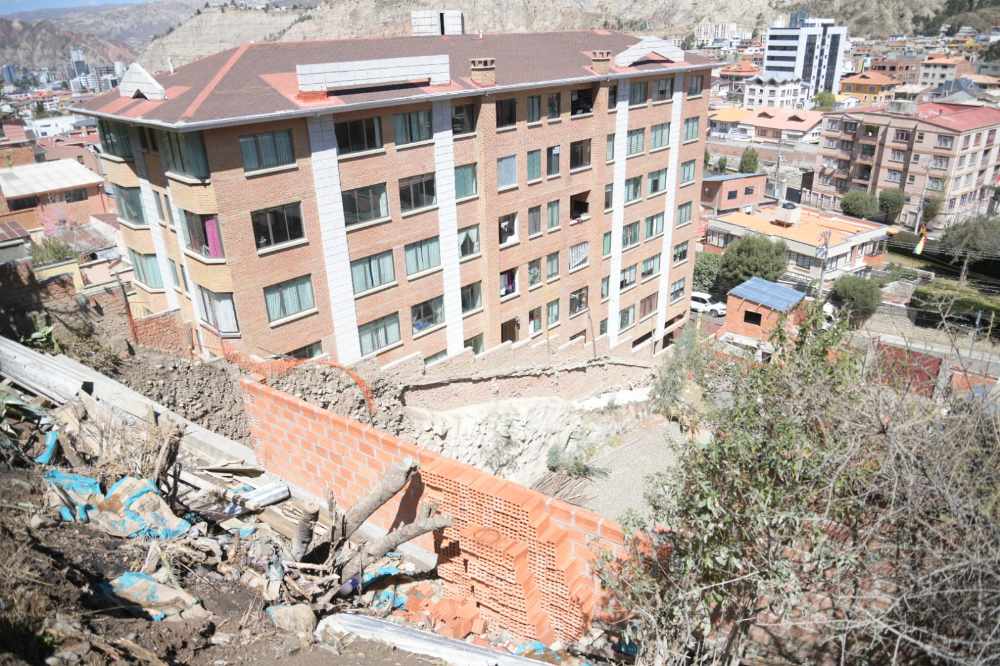 Jorge Flores Tordoya lamentó el perjuicio a 13 copropietarios de uno de los edificios. «Y hay otras casas que también están siendo afectadas y ya estamos viendo los deslizamientos; no hay un lugar por donde puedan pasar las aguas, sino directamente se acumulan en el cerro y eso hace que nuestros muros de contención se están humedeciendo», dijo.