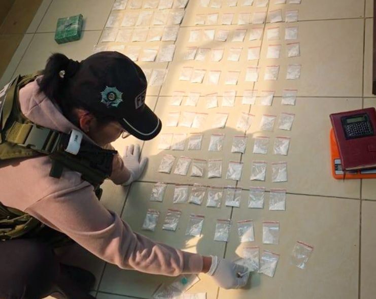 Los agentes antidrogas encontraban una maleta que contenía un paquete forrado con cinta masquín verde con 126 bolsitas, tipo ziploc, todas con clorhidrato de cocaína. En total, se cuantificaron 1.050 gramos de droga.