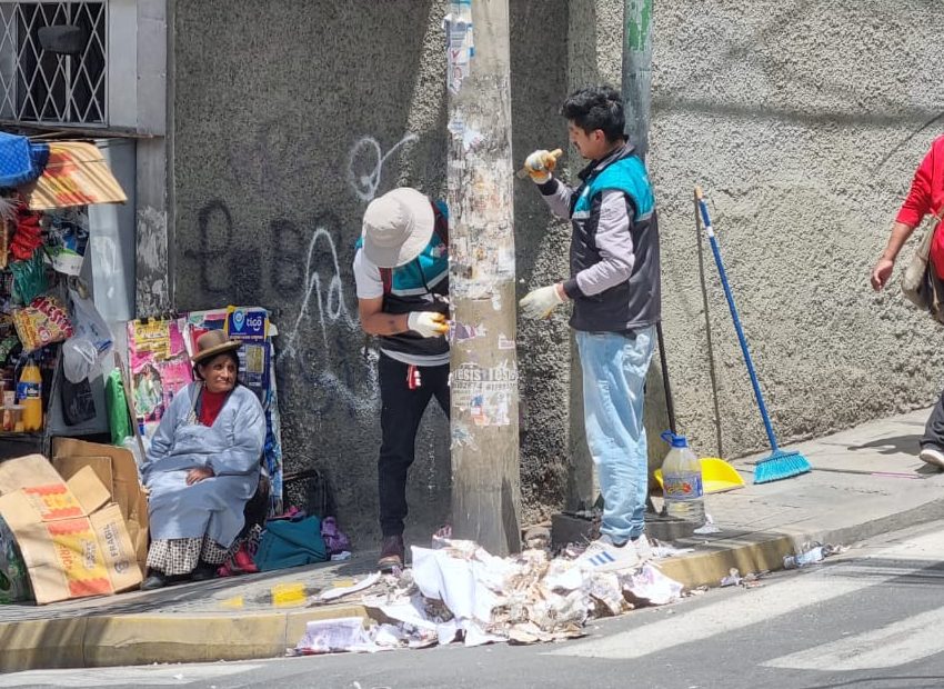 En una acción destinada a revitalizar el centro paceño, la Subalcaldía Centro llevó adelante una jornada intensiva de limpieza y mantenimiento de postes en el Casco Urbano Central. El operativo se realizó este lunes y comprendió un recorrido desde la calle Bueno, pasando por la calle Mercado, hasta el Palacio Consistorial, con la meta de devolver orden y estética a una de las zonas más transitadas de la ciudad.