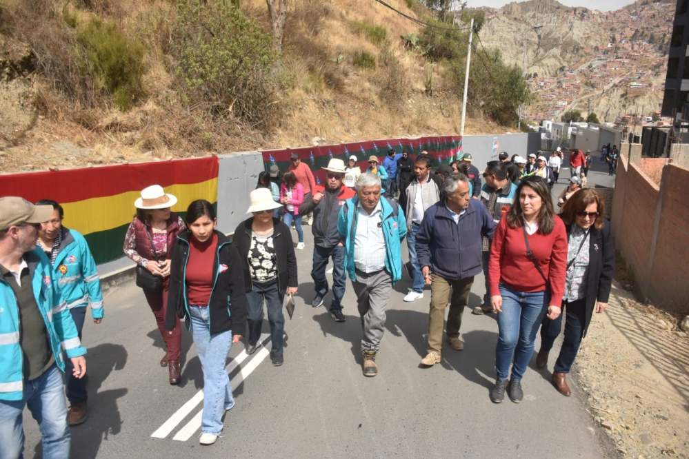 Lovera también destacó las obras complementarias realizadas a través de la UMRI, incluyendo el arreglo del badén y la construcción de un canal cuneta para la gestión de aguas pluviales. Horas antes, el Alcalde paceño entregó el asfalto de la avenida Las Retamas de Alto Irpavi.