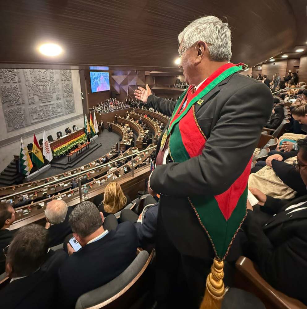 “Esta es la nueva Bolivia que se abre al mundo. Nunca más una Bolivia aislada, sometida a ideologías fracasadas, nunca más una Bolivia de espaldas al mundo. Bolivia vuelve al mundo y el mundo vuelve a Bolivia, por eso nuestros brazos están abiertos”, señaló el Mandatario, ante los aplausos de los asistentes al hemiciclo legislativo.