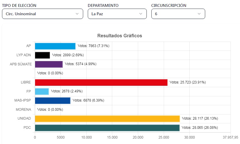 Uninominales La Paz: 10 se quedan con PDC, 2 para Unidad, 1 para Libre y 1 en disputa voto a voto